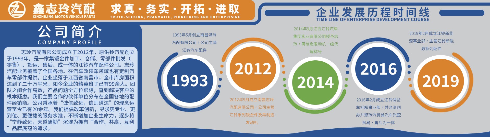 公司組成的“鑫志玲汽配”,業務包括江鈴汽車零部件及覆蓋件、銷售、物流、售后、鈑金件定制等,涉及江鈴的車型有、全順、特順、途睿歐、v362、v348、域虎3~9、寶典、領界、撼路者、D-MAX、鈴拓、mu-x牧游俠、瑞邁、易致新能源系列、馭勝、騏鈴、陸風、輕卡凱運、順達汽車等30多款車型,整體年度營業規模超1.5億元。 南昌志玲汽配將繼續堅持誠信、修行、務實、進取的精神發展方針,做到更專業汽車配件,為客戶排憂解難。形成經營專業化、發展規范化、模式標準化的企業平臺。力爭成為世界知名企業的首選供應商。南昌志玲汽配將繼續堅持誠信、合作、務實、進取的共贏發展方針,形成產業多元化、發展規模化、經營專業化的產銷經營格局。